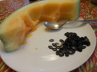 And by the way, I got my wish for seeds -- in spades! I think the yellow melon has half again as many seeds as a red one. Or maybe they're just more apparent against the lighter background.